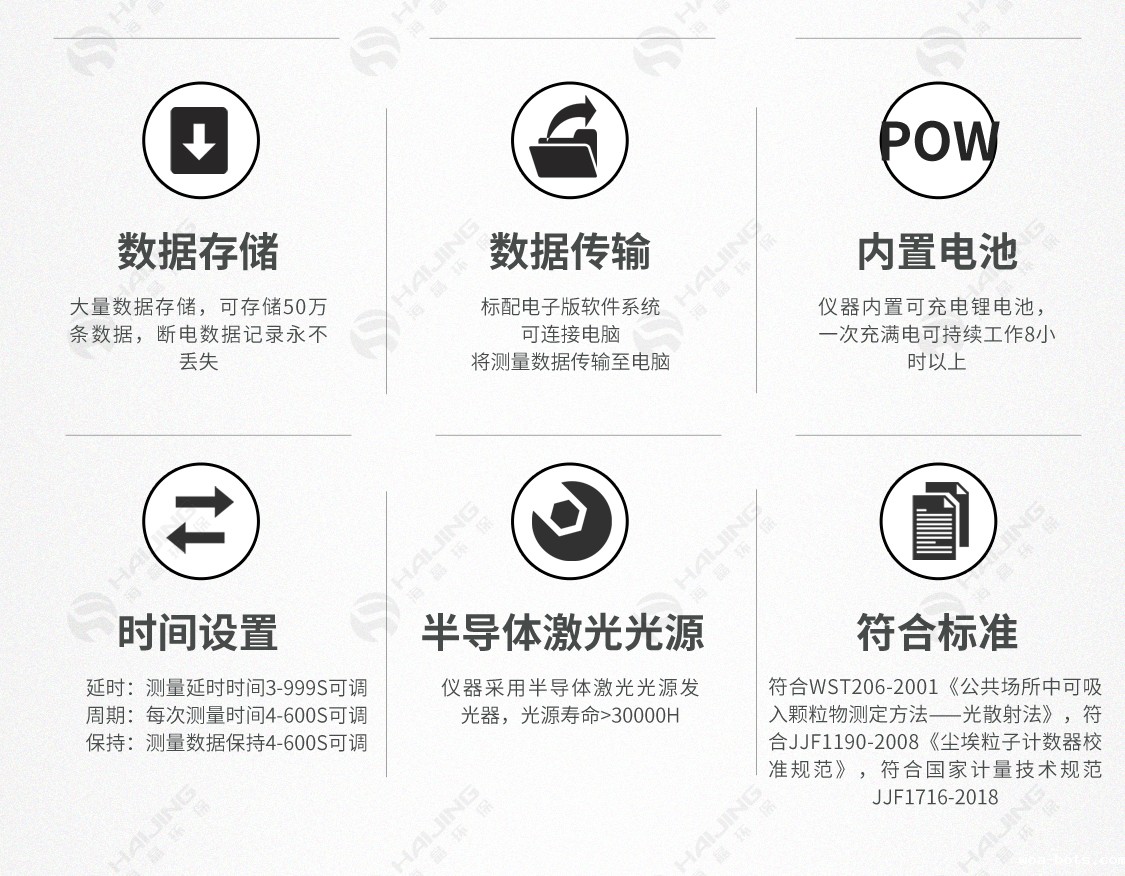 | 粒径通道 | 0.3,0.5,1.0,2.5(3.0),5.0,10.0(um)六通道 |