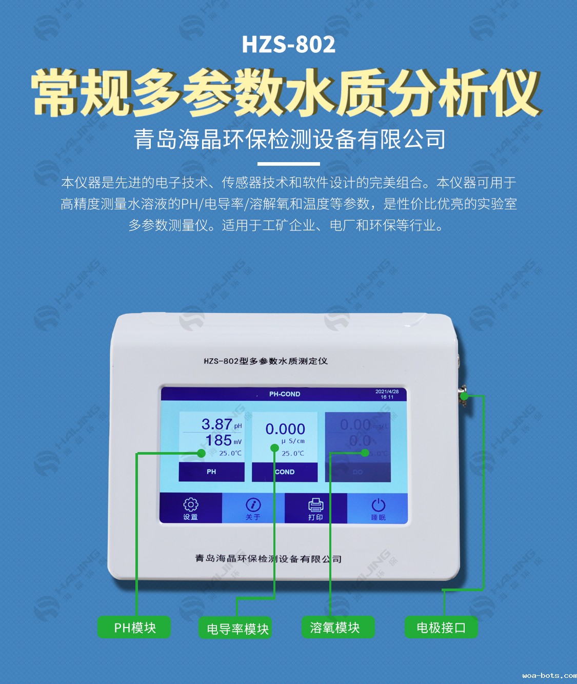 | 产品特点: | HZS-802型精密pH/mV/电导率/溶解氧多参数测定仪 一、仪器用途: 用于实验室高精度测量的多参数测量仪,涵盖pH、电导率和溶解氧等多种电化学参数。适用于石油、化工、医药、电厂和环保等行...... |
