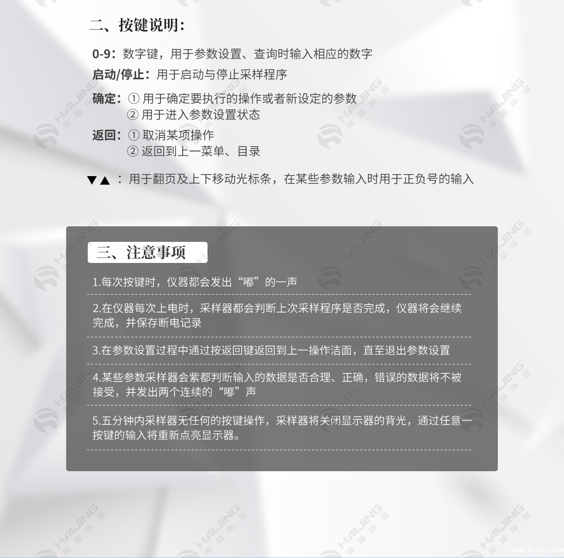 15、采样程序启动方式:外部信号触发启动、超标留样启动、预设时间启动、即时启动、液位超标触发启动等;