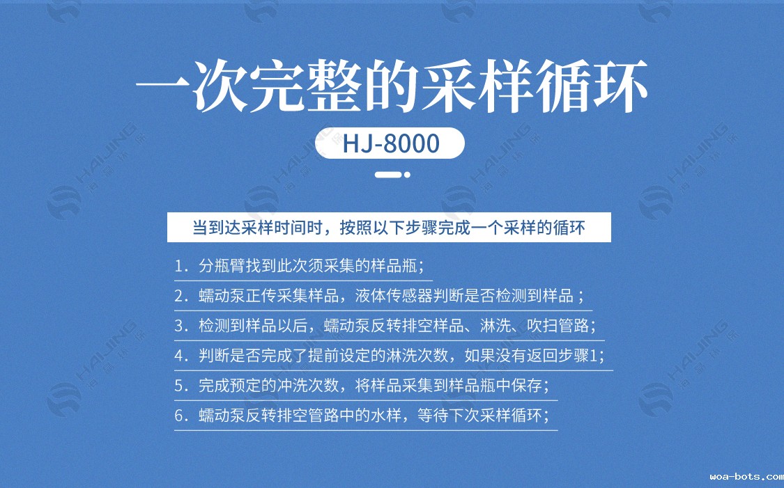 4.有管路自动排空功能,样品采集完毕自动排空管路,满足各类水质条件,具有管路预淋洗功能,保证采集到具有代表性的样品。