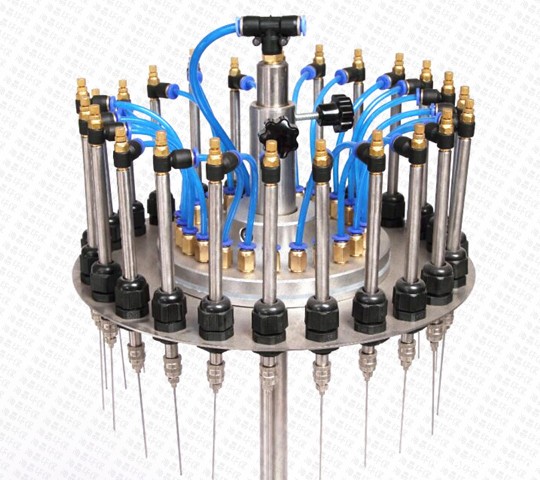 3、自由升降的针型阀管,针阀控制各样品位氮气流速及开关