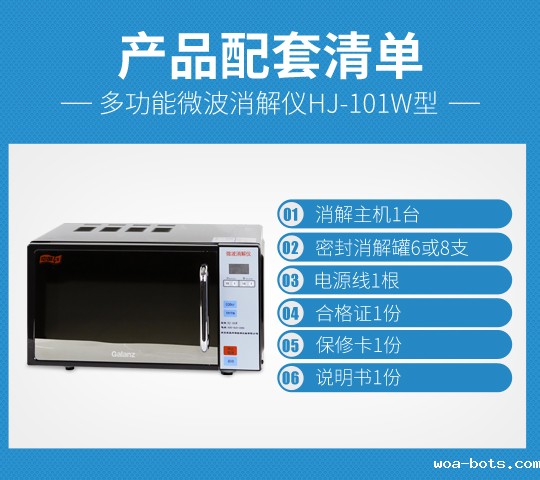 六、配置清单:消解主机1台,密封消解罐6支或8支,电源线1根,合格证、保修卡、说明书各一份。