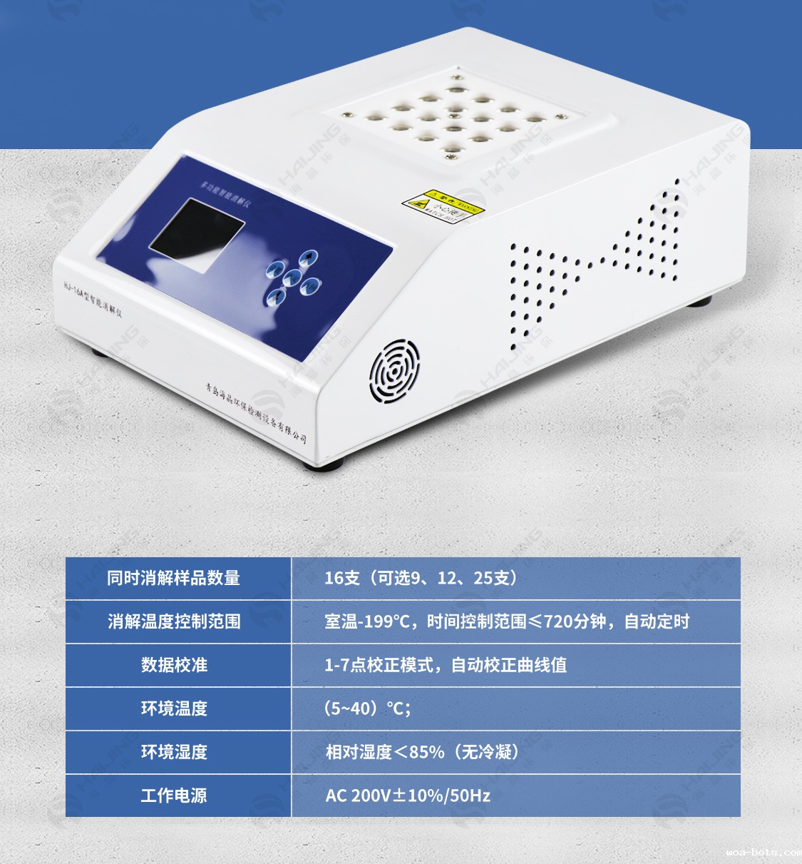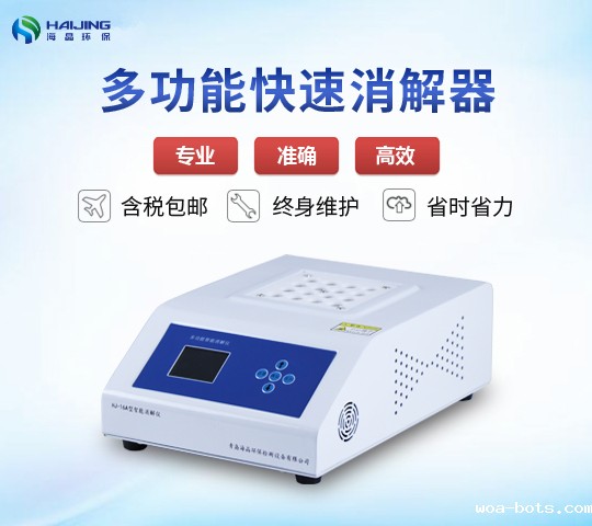 8)消解器通用于COD、总磷、总氮等项目的消解;智能PID温度控制技术,加热均匀、加热速度快。