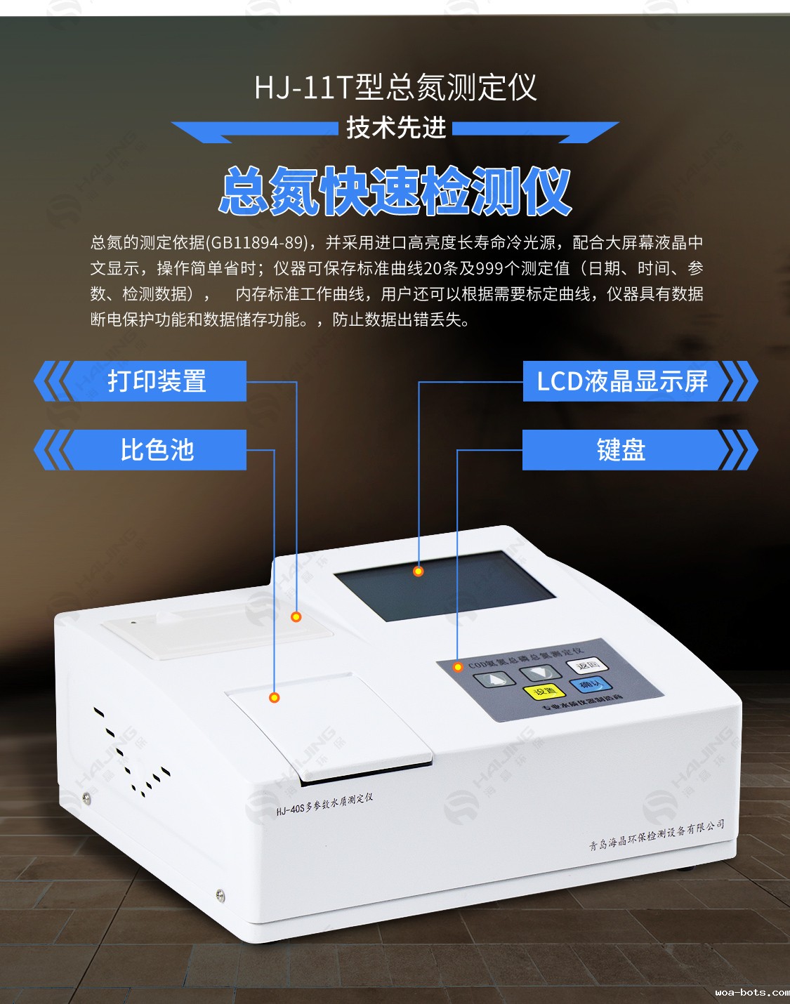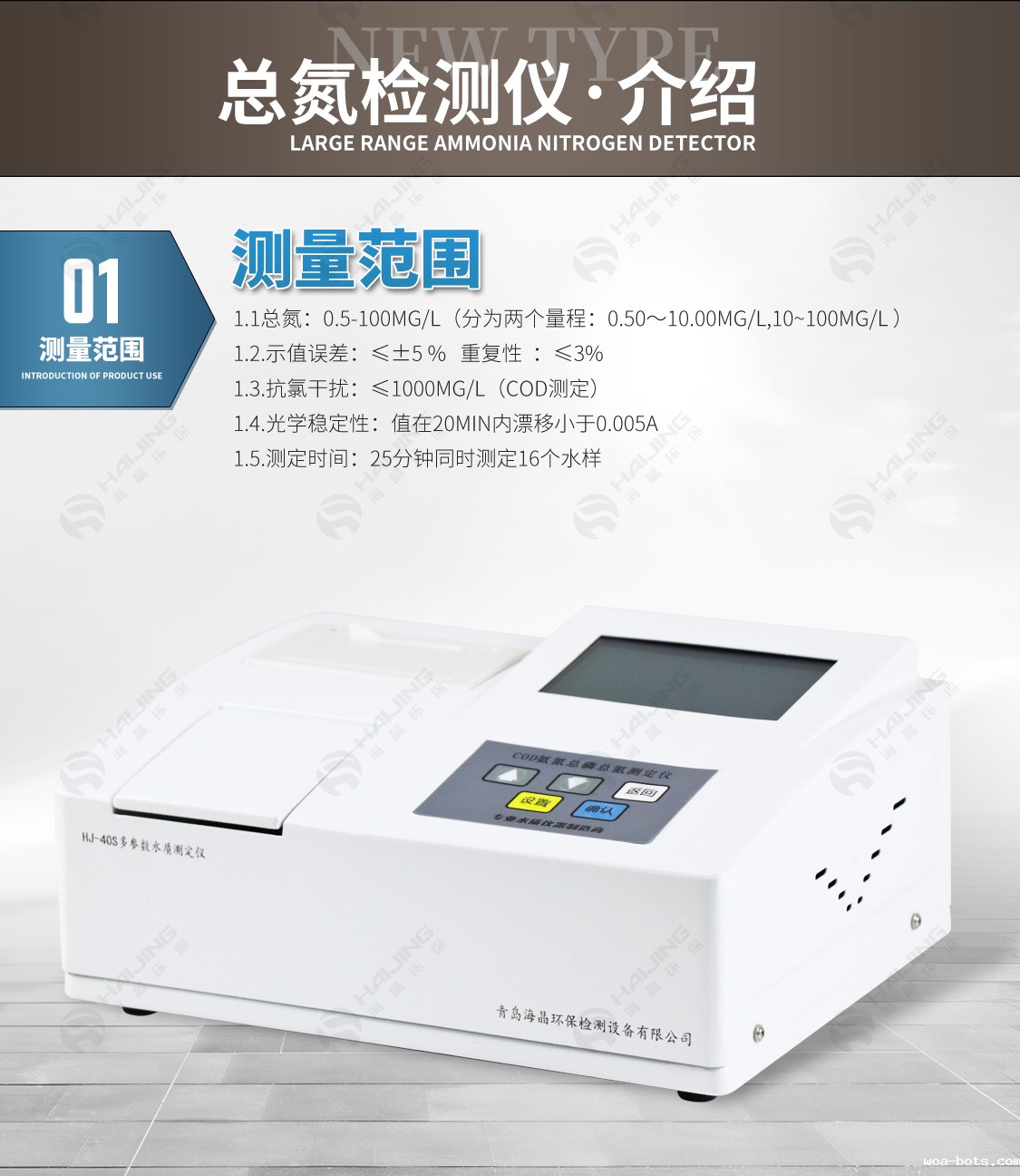 该产品主要用于检测总氮指标,它将经典的比色法与先进的计算机技术结合起来,应用微电脑光电子比色检测原理取代传统的目视比色法,消除了人为误差,测量分辨率大大提高。