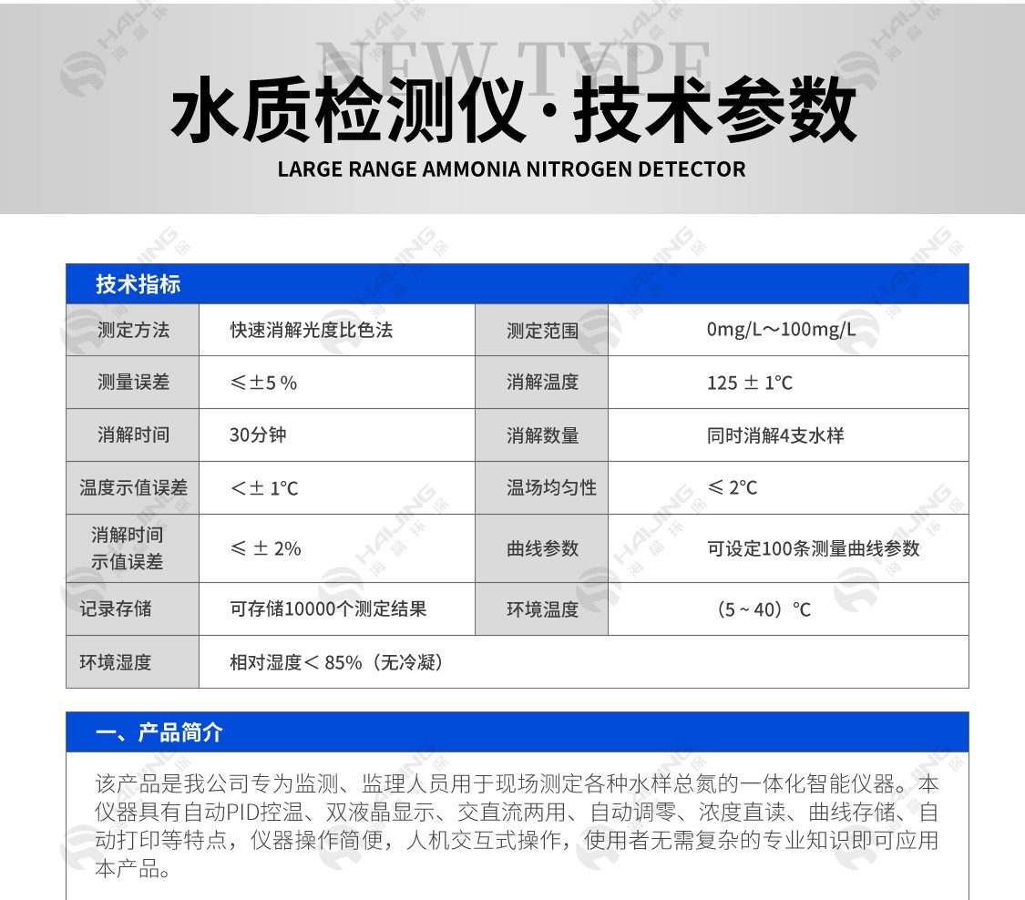 ② 测量范围:≤ 100mg/L;测量误差:≤±5 %