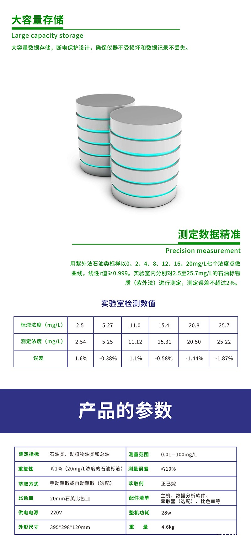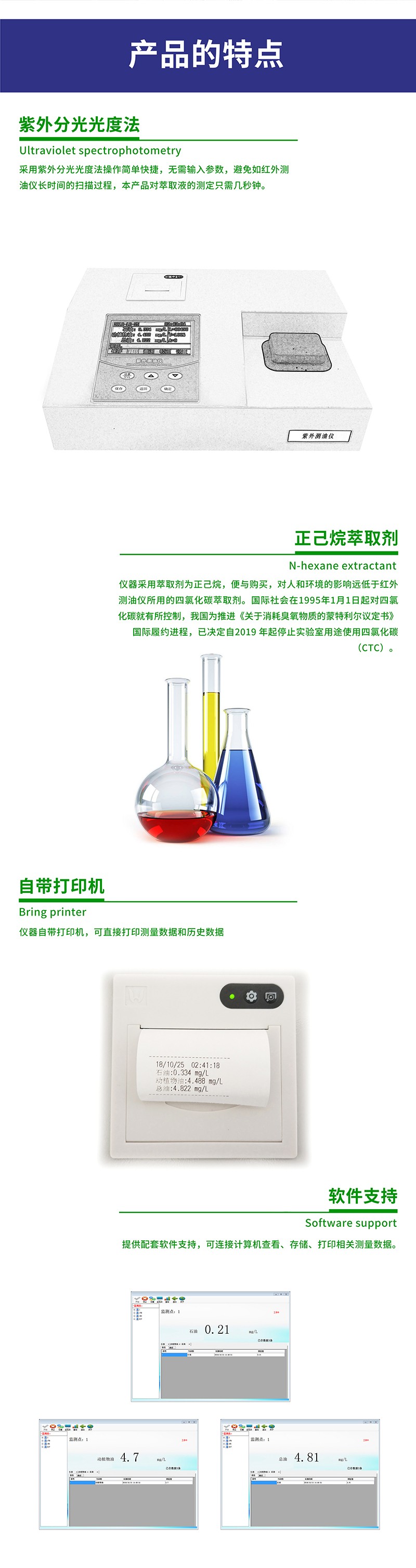 1. 采有紫外分光光度法测量油类浓度,方便快捷;