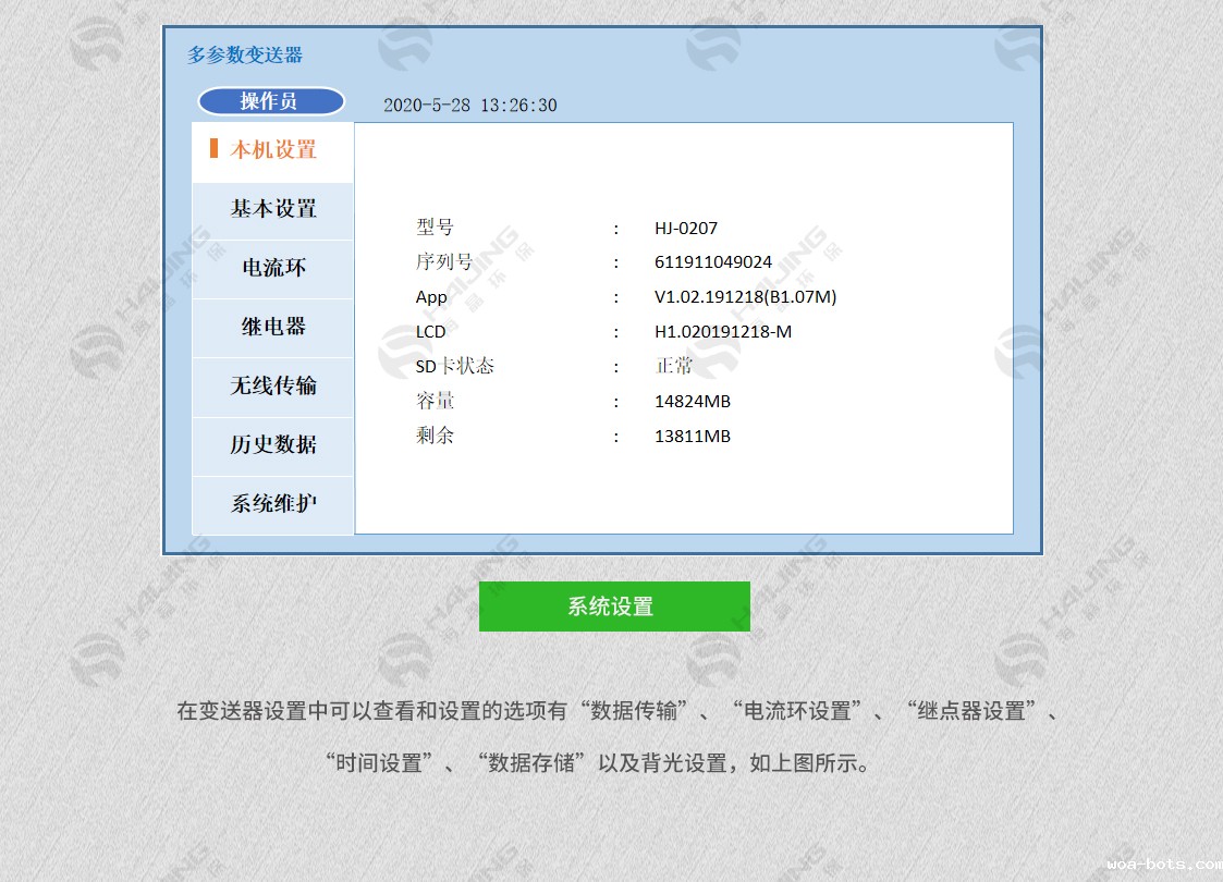 有存取数据和无线传输功能;用户也还可通过控制器的界面配置和校准实现4-20mA模拟输出;实现继电器控制及数字通讯等功能。